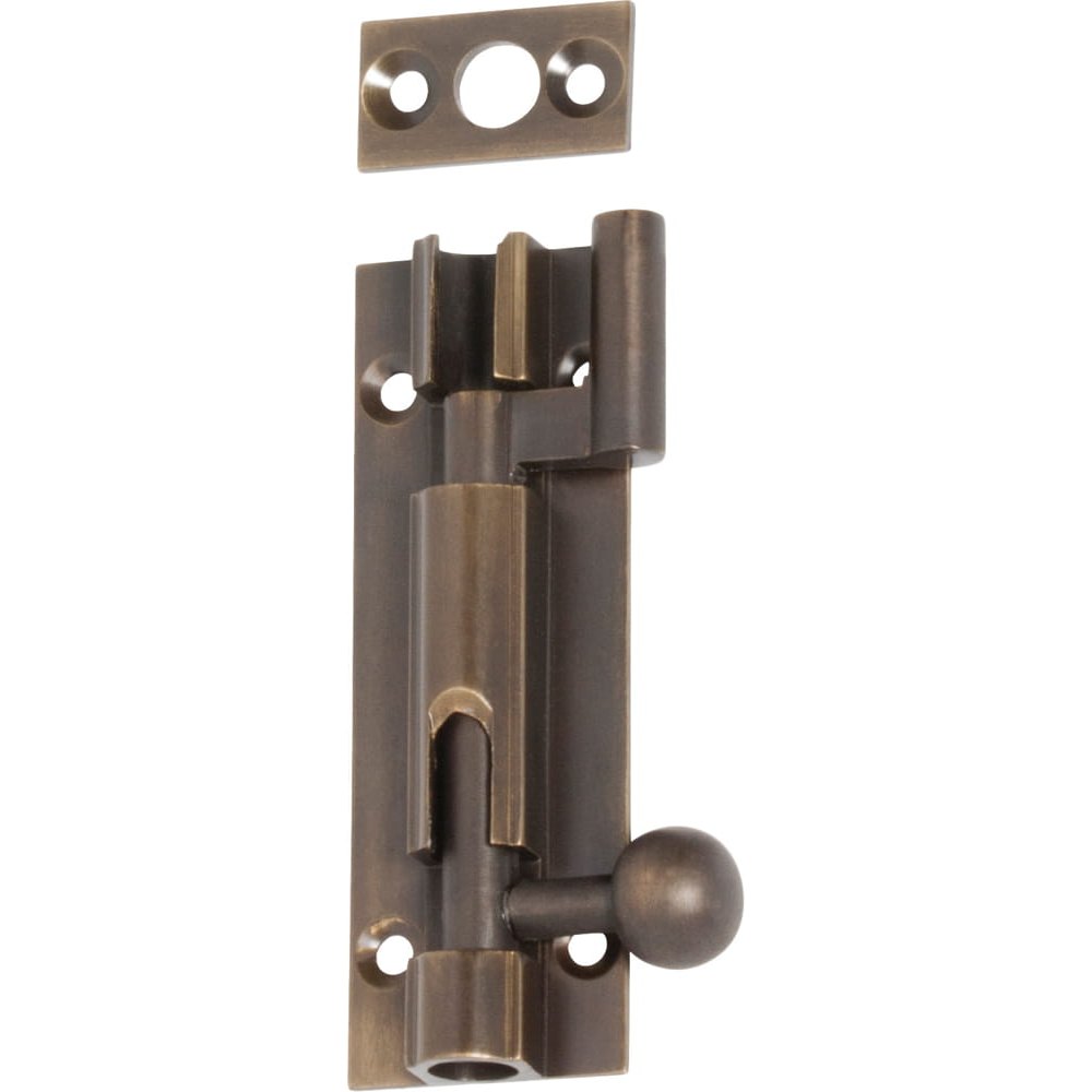 • TradCo Barrel Bolt Offset Antique Brass 75mm