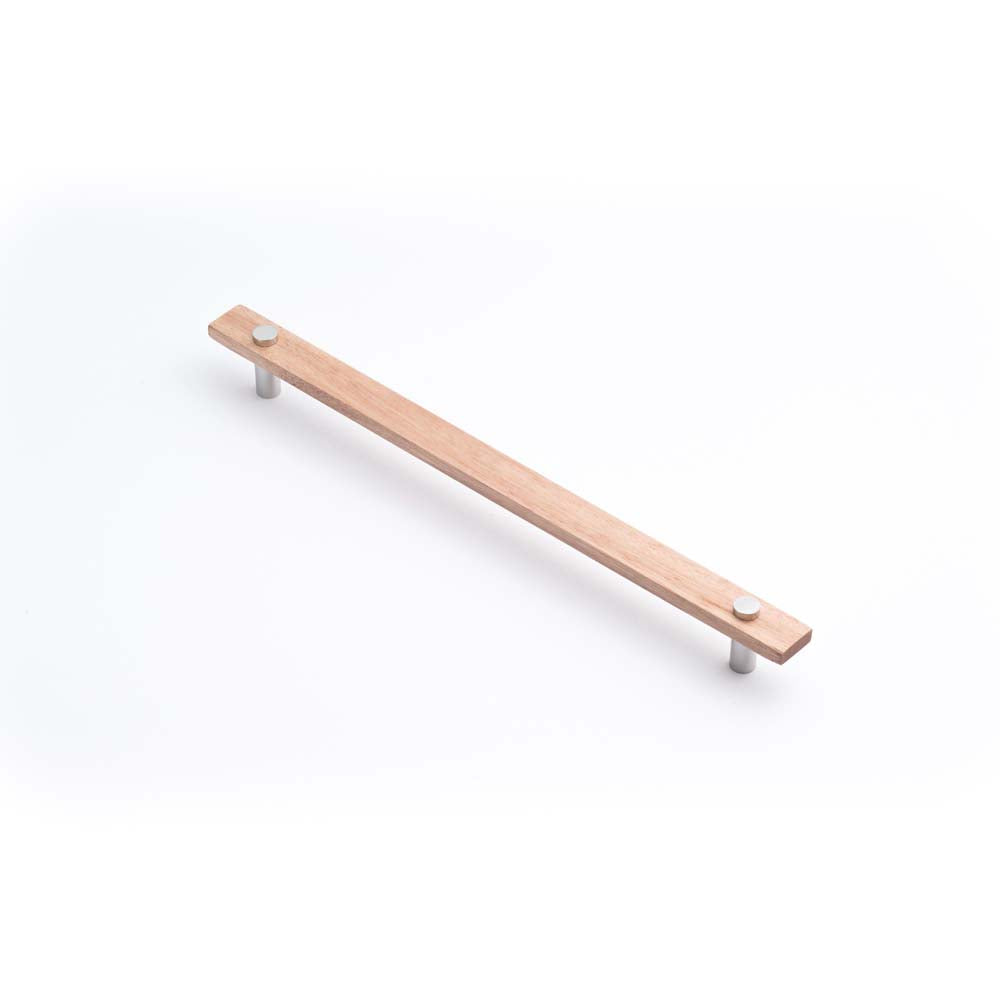 Lenah 288mm Cabinet Handle Tasmanian Oak Face Caps Polished Chrome