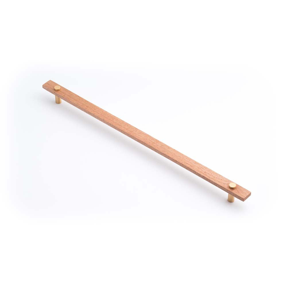 Lenah 416mm Cabinet Handle Tasmanian Oak Face Caps Brushed Gold