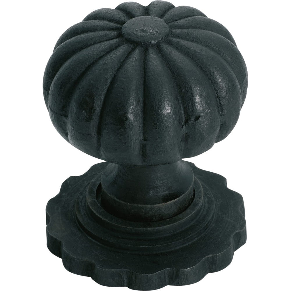 Cupboard Knob Fluted Iron Backplate Matt Black 38mm