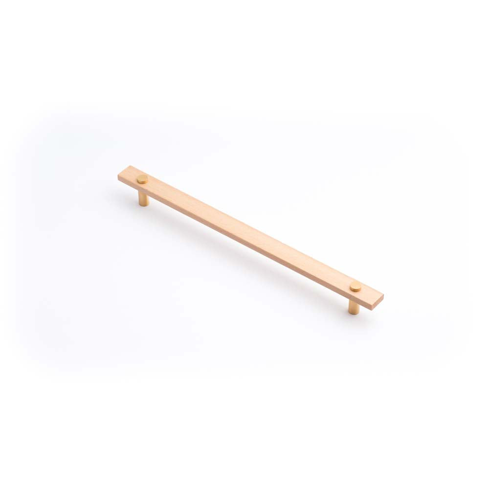 Lenah 288mm Cabinet Handle European Beech Face Caps Brushed Gold
