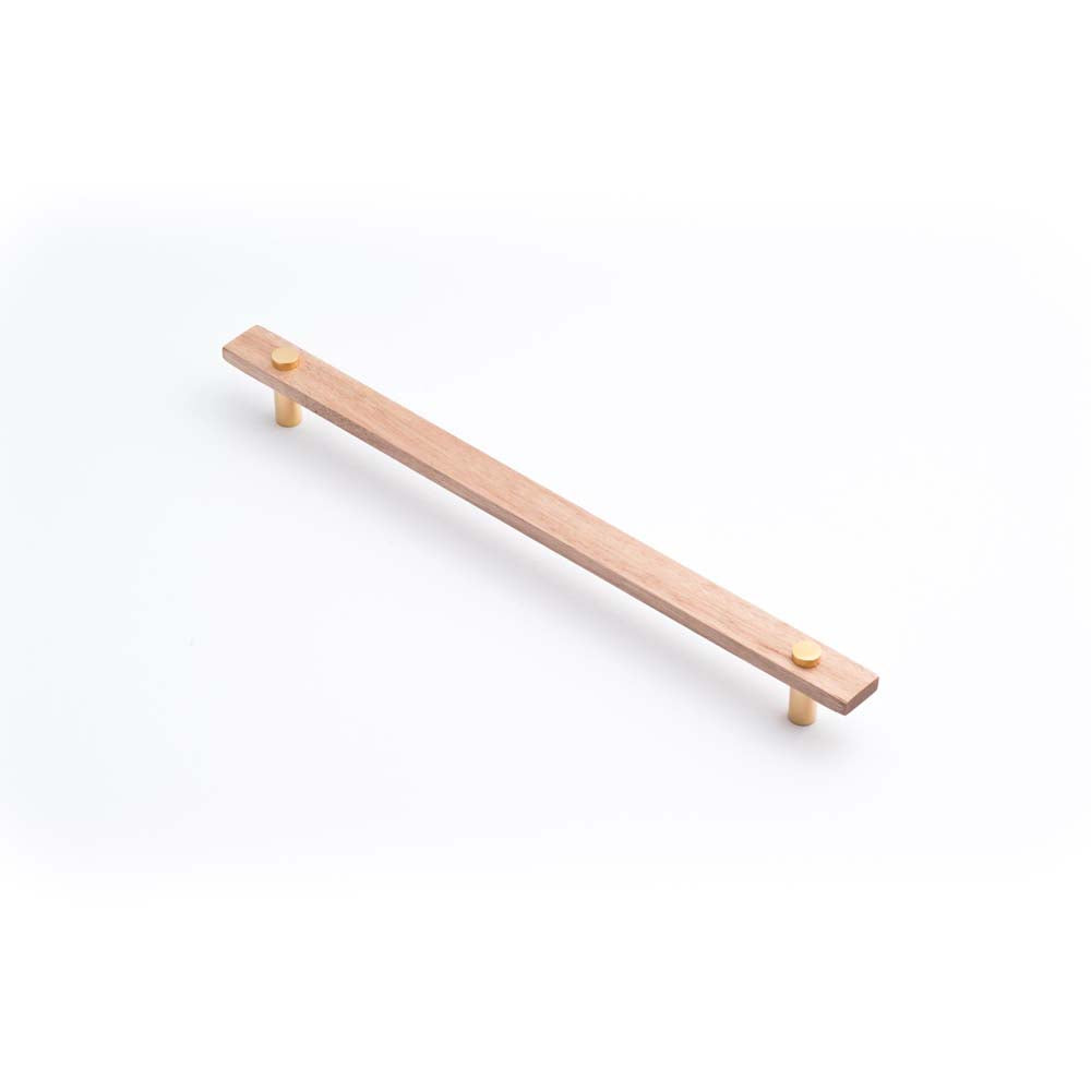 Lenah 288mm Cabinet Handle Tasmanian Oak Face Caps Polished Gold