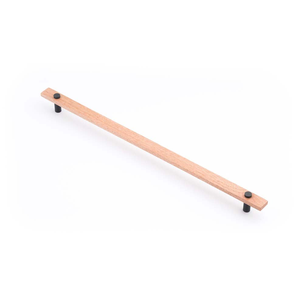Lenah 416mm Cabinet Handle Tasmanian Oak Face Caps Matt Black