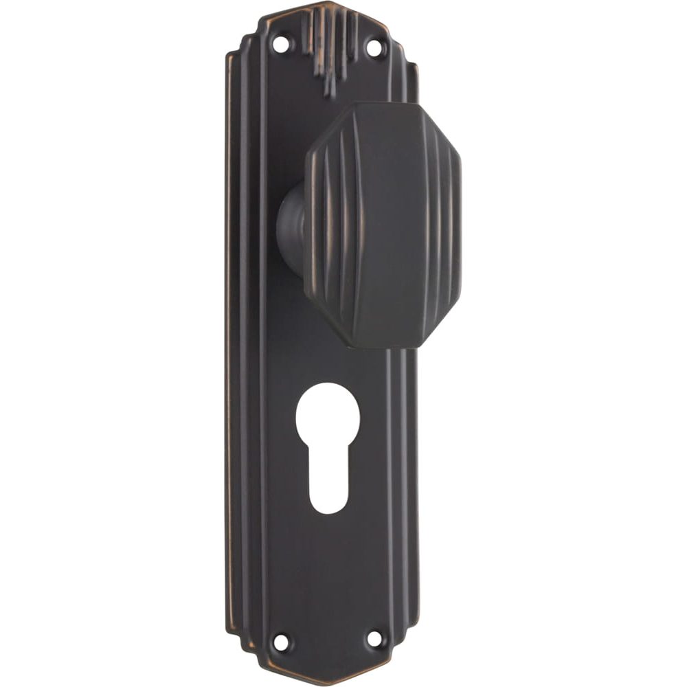 • TradCo Door Knob Napier Art Deco Euro Pair Antique Copper
