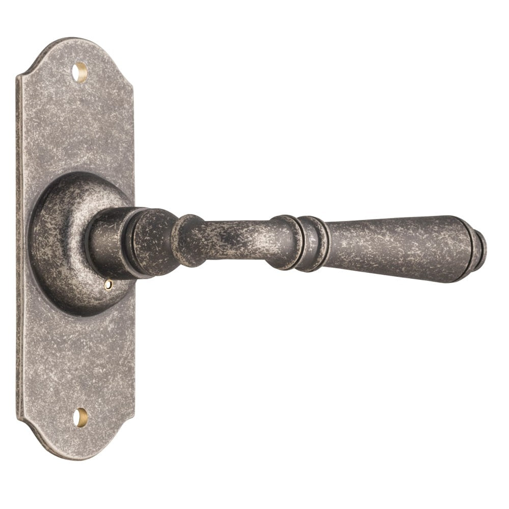 Door Lever Reims Latch Pair Rumbled Nickel