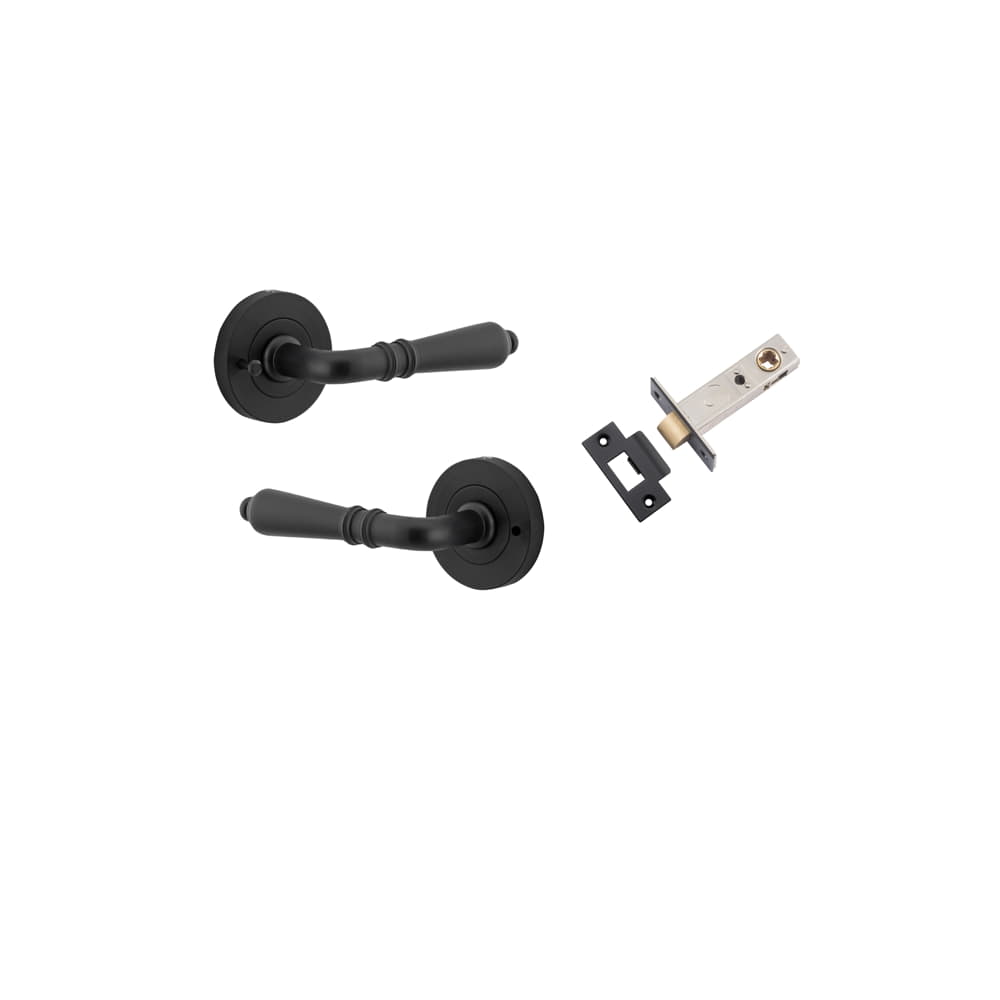 Door Lever Sarlat Round Rose Inbuilt Privacy kit Matt Black