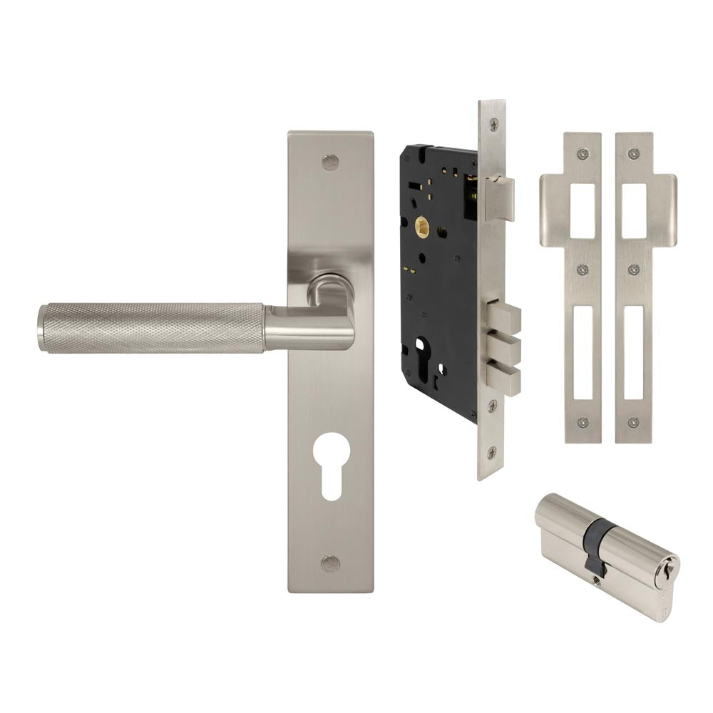 Lumina Diamond Knurled Lever Longplate Entrance Set CTC85 K/K Brushed Nickel