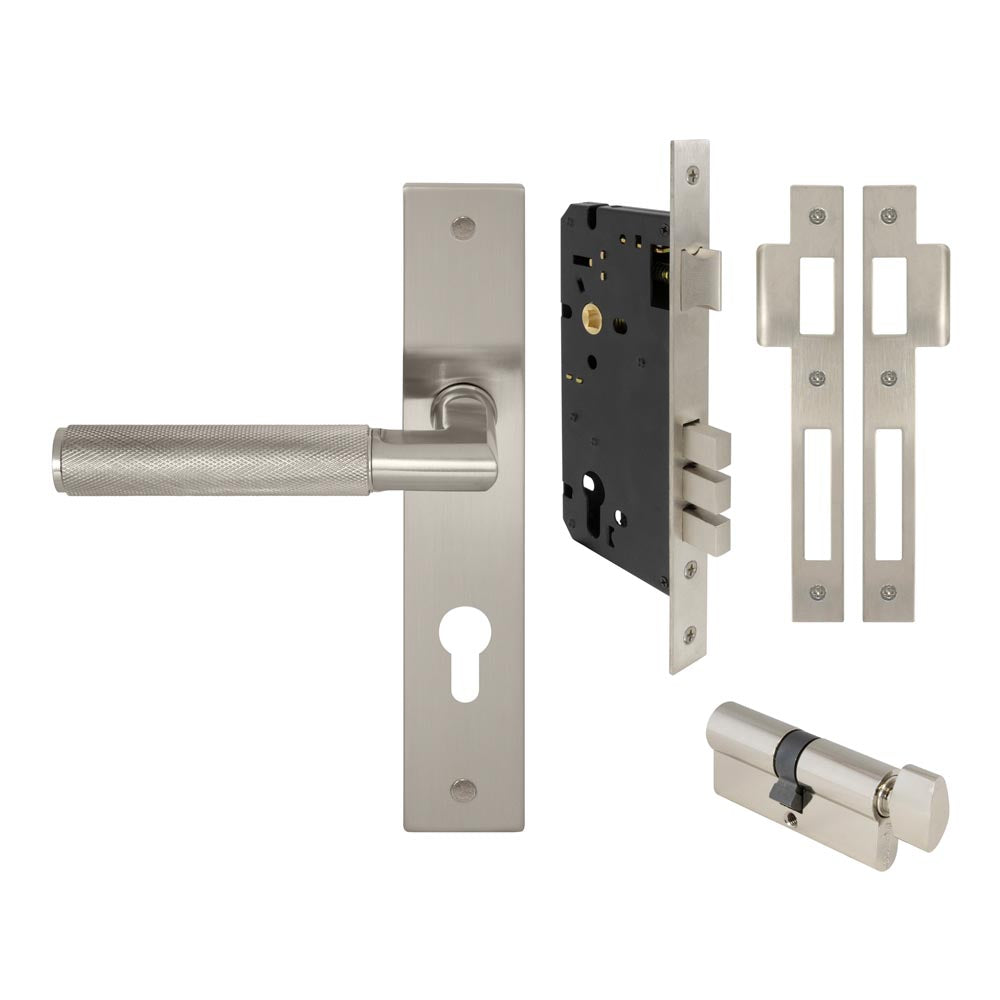 Lumina Diamond Knurled Lever Longplate Entrance Set CTC85 K/T Brushed Nickel