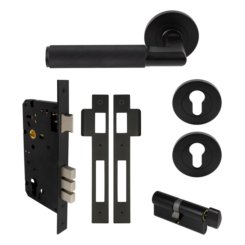 Lumina Diamond Knurled Lever Round Rose Entrance Set CTC85 K/T Matt Black