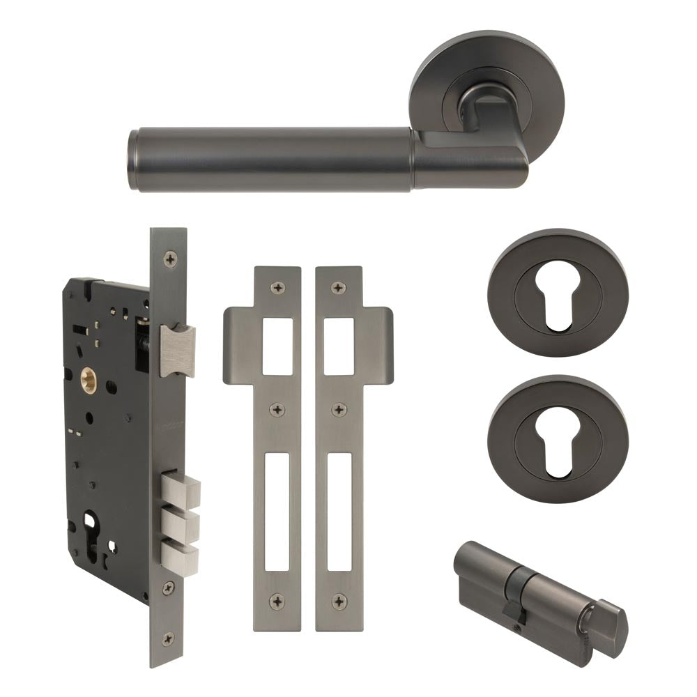 Lumina Plain Lever Round Rose Entrance Set CTC85 K/T Graphite Nickel