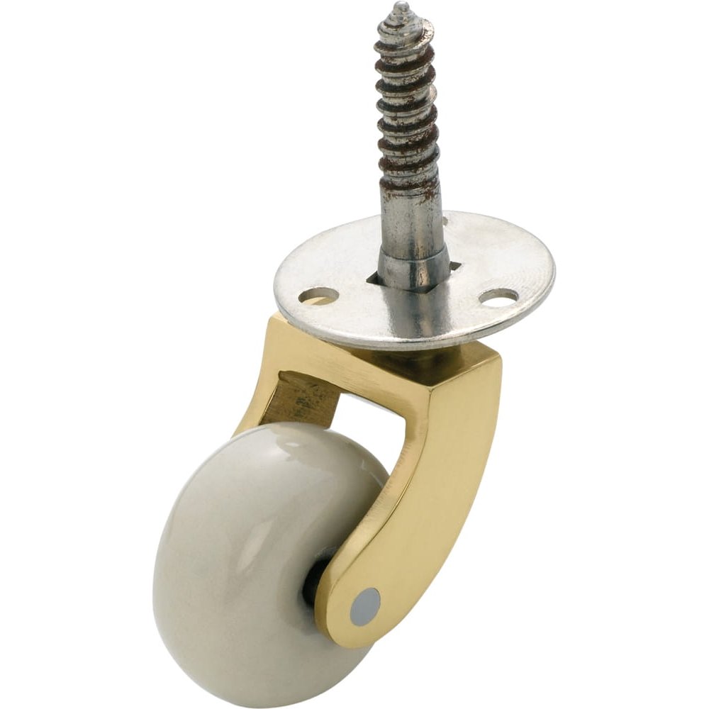 Castor Screw Plate White Porcelain Wheel Polished Brass D32mm