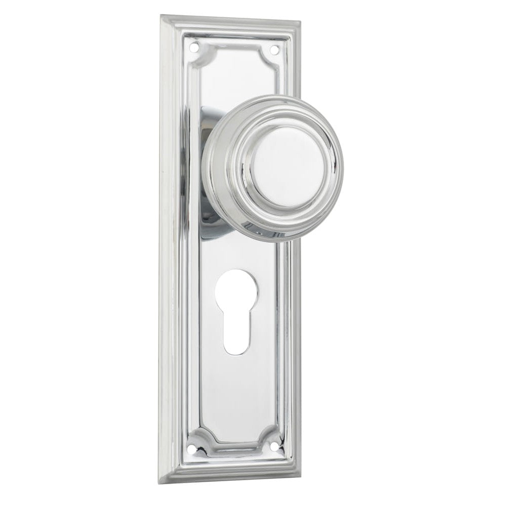 Door Knob Edwardian Euro Pair Chrome Plated