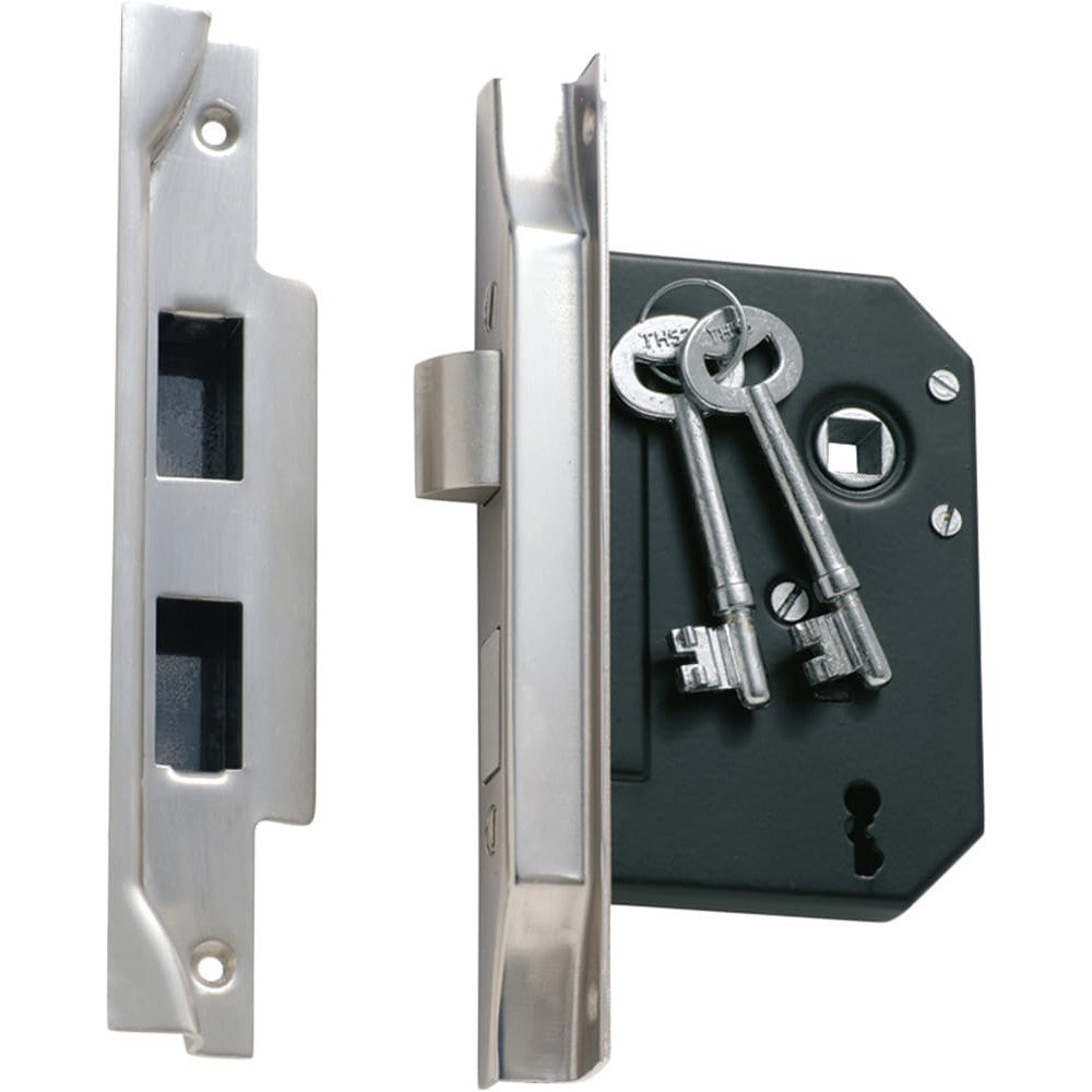 Mortice Lock 3 Lever Rebated Satin Chrome CTC57mm Backset 57mm