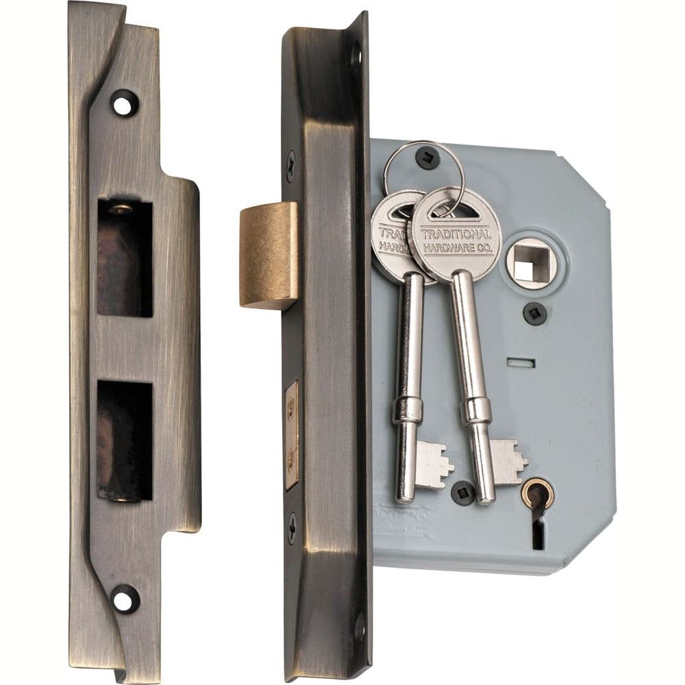 Mortice Lock 5 Lever Rebated Antique Brass CTC57mm Backset 57mm