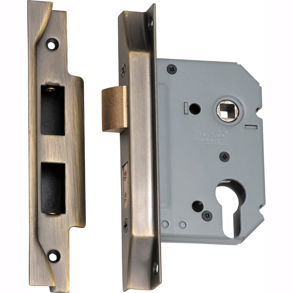 Mortice Lock Euro Rebated Antique Brass CTC47.5mm Backset 57mm