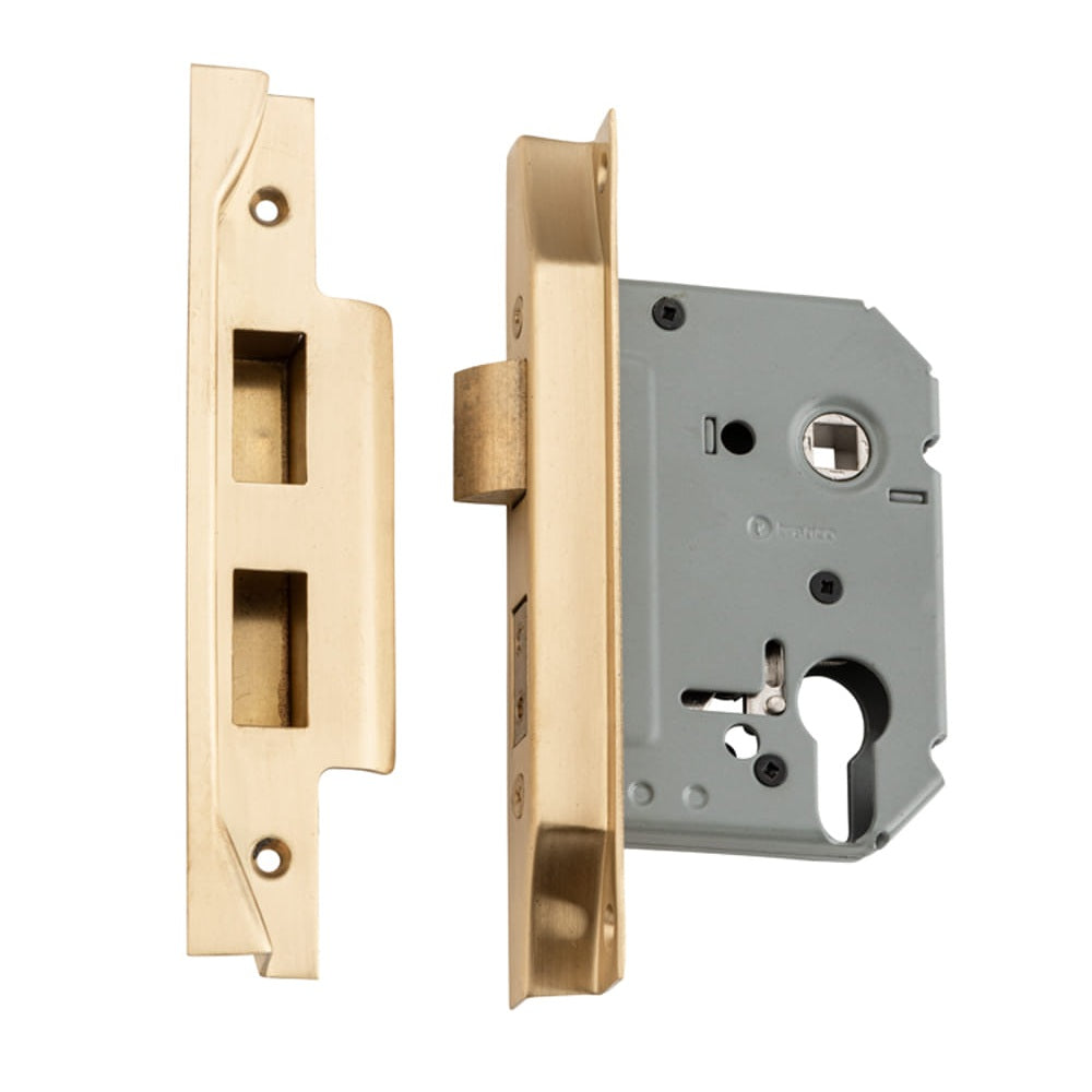 Mortice Lock Euro Rebated Satin Brass CTC47.5mm Backset 57mm