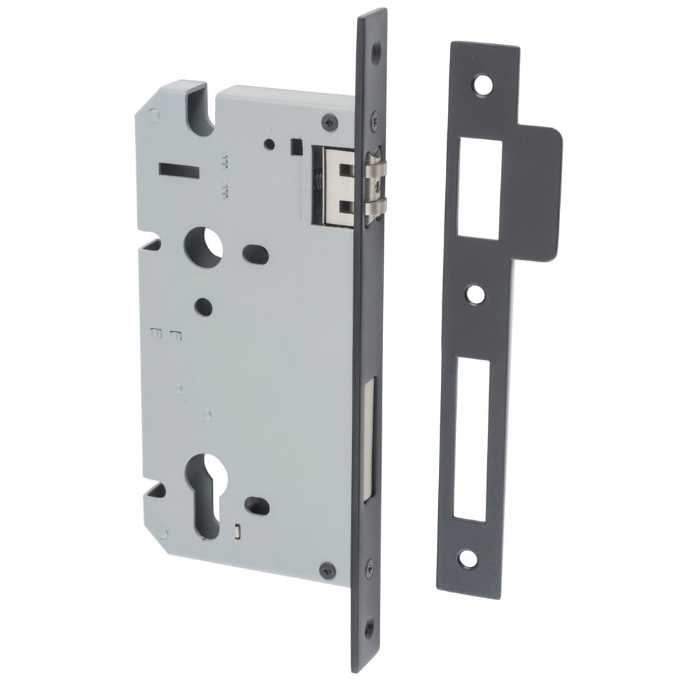 Mortice Lock Roller Euro Matt Black CTC85mm Backset 60mm