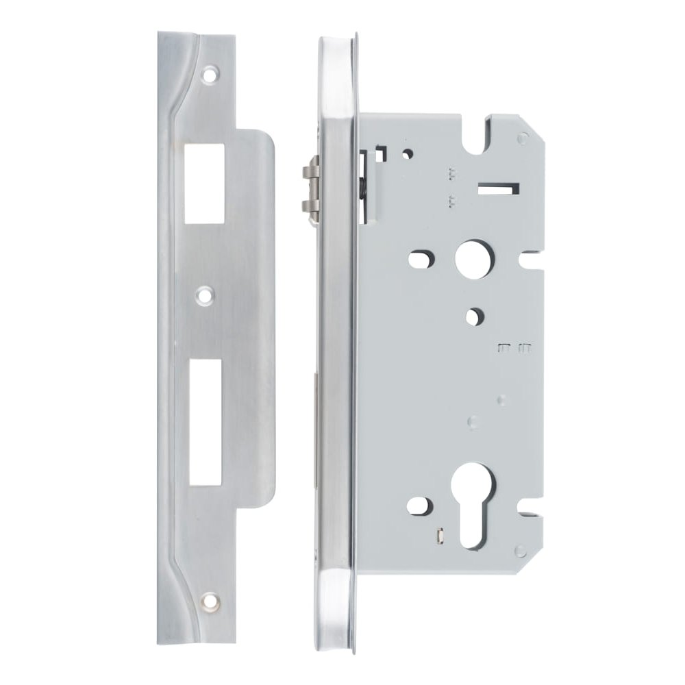 Mortice Lock Roller Euro Rebated Brushed Chrome CTC85mm Backset 60mm