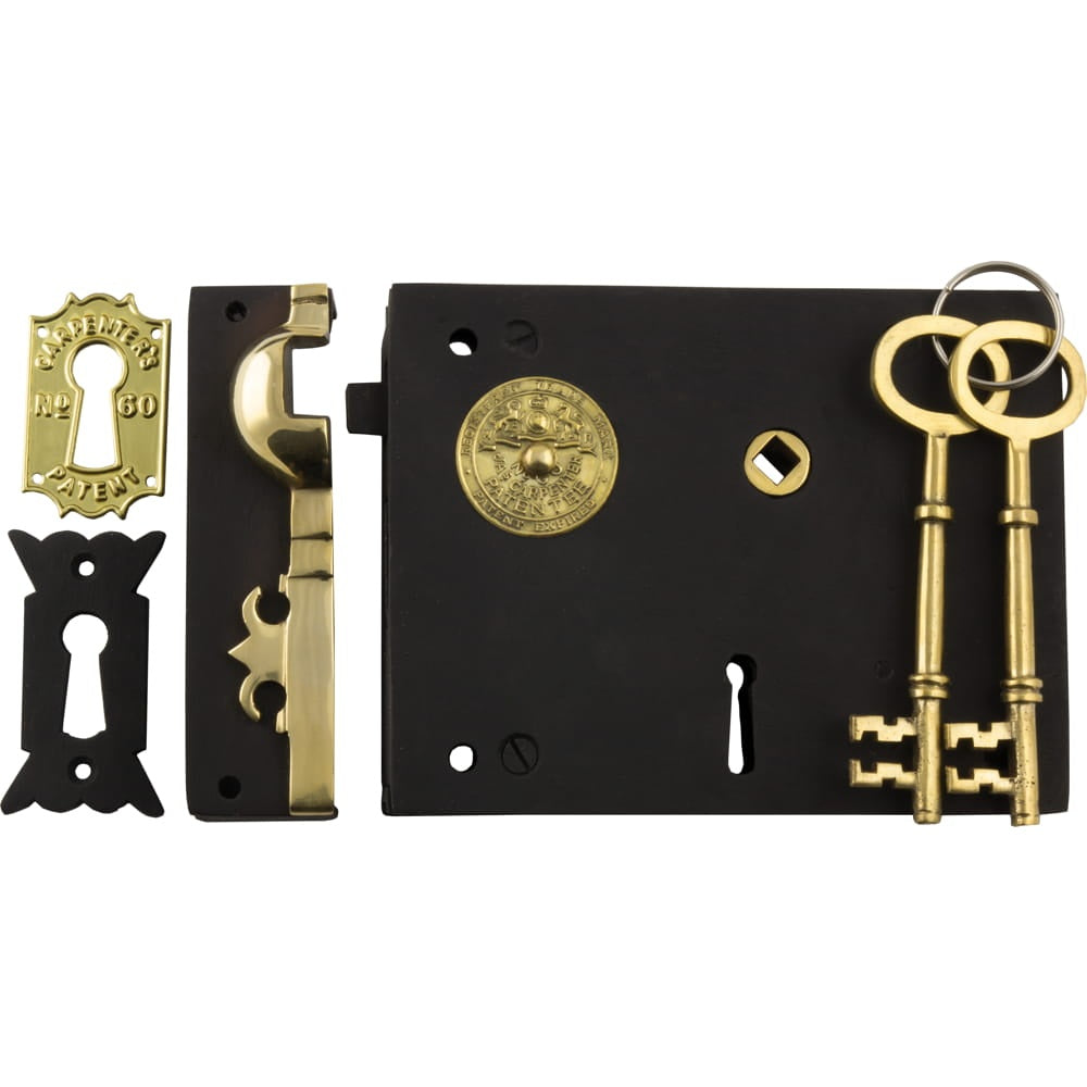 Rim Lock Carpenters Right Hand Unlacquered Brass Antique Finish