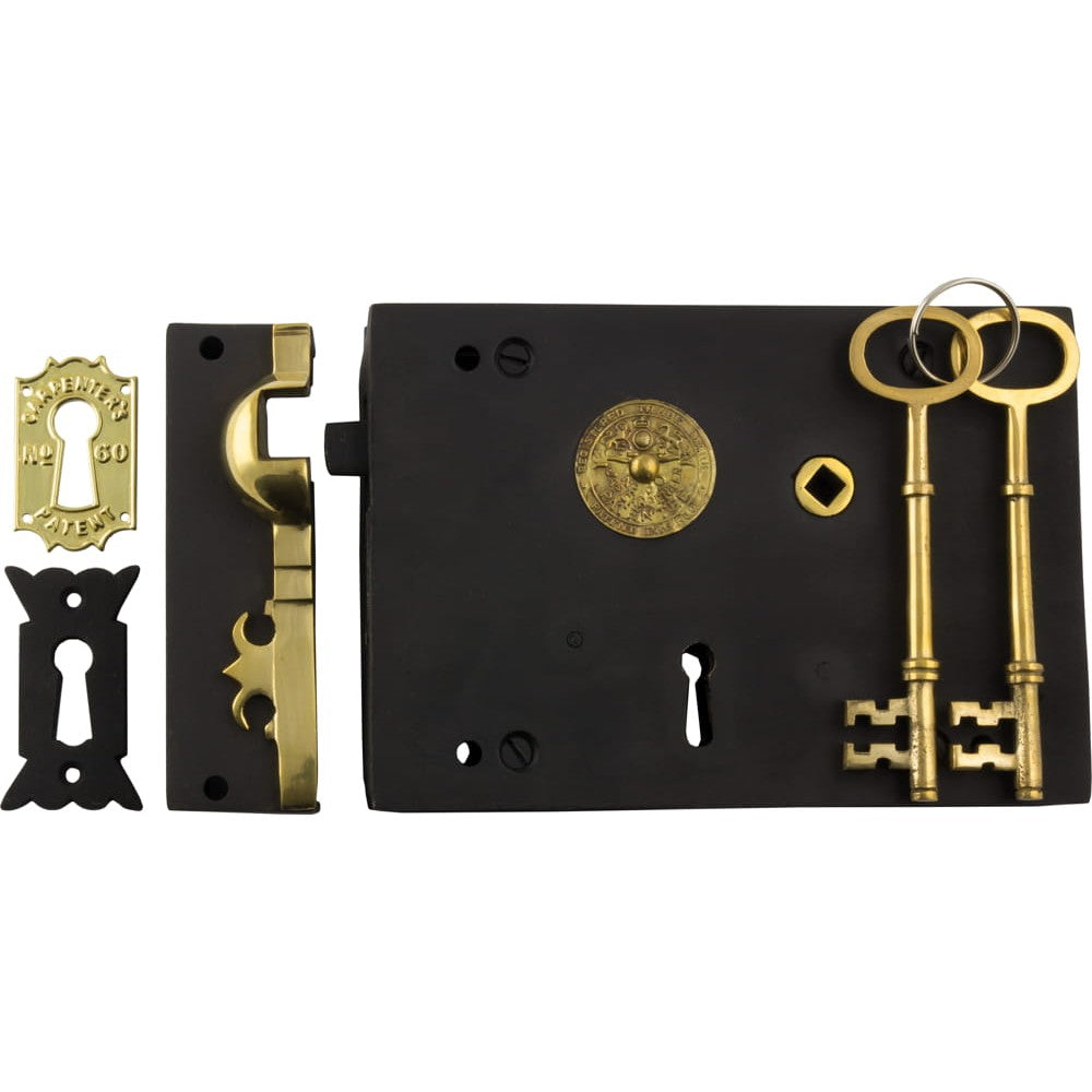 Rim Lock Carpenters Right Hand Unlacquered Brass Matt Black