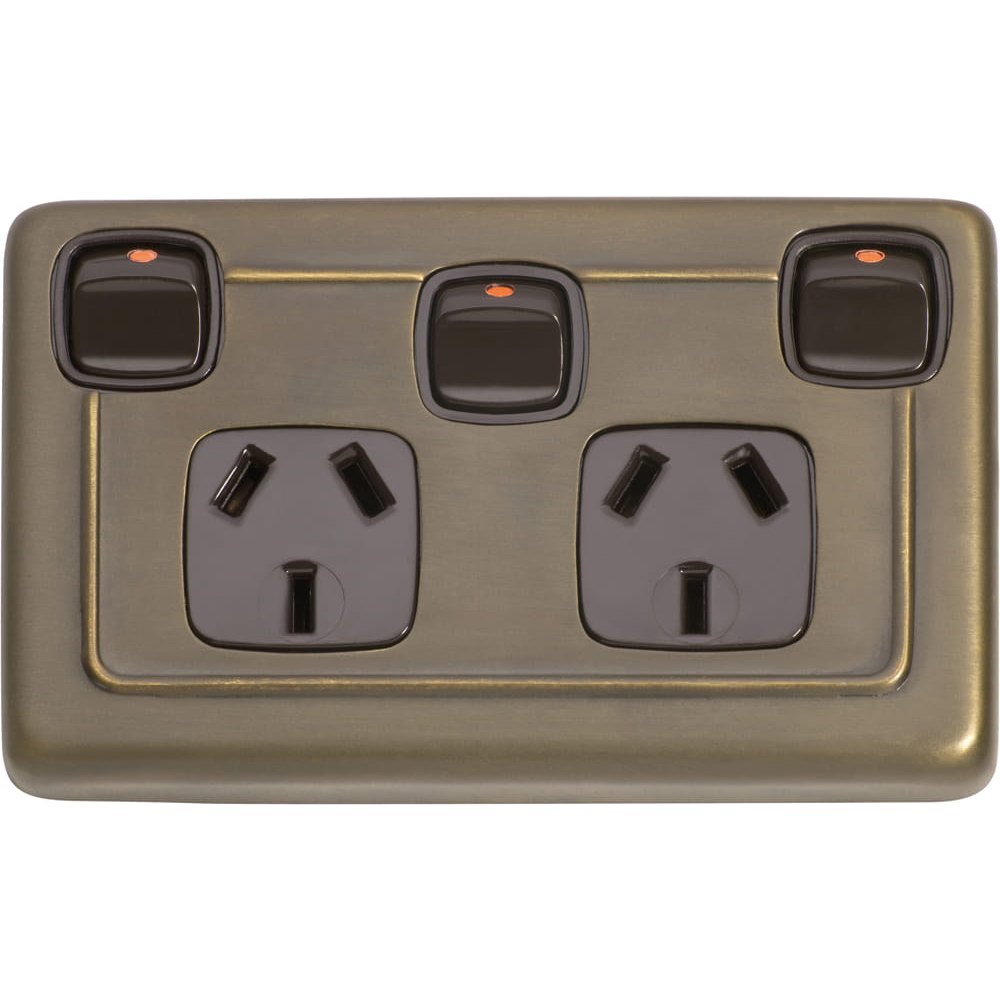 Socket Flat Plate Rocker Double With Switch Brown Antique Brass