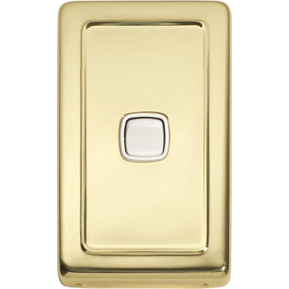 Switch Flat Plate Rocker 1 Gang White Polished Brass