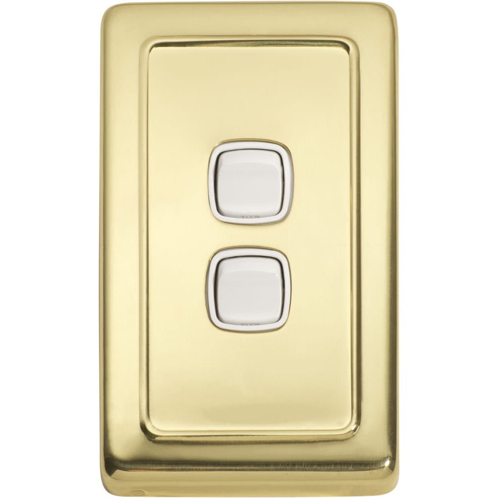 Switch Flat Plate Rocker 2 Gang White Polished Brass