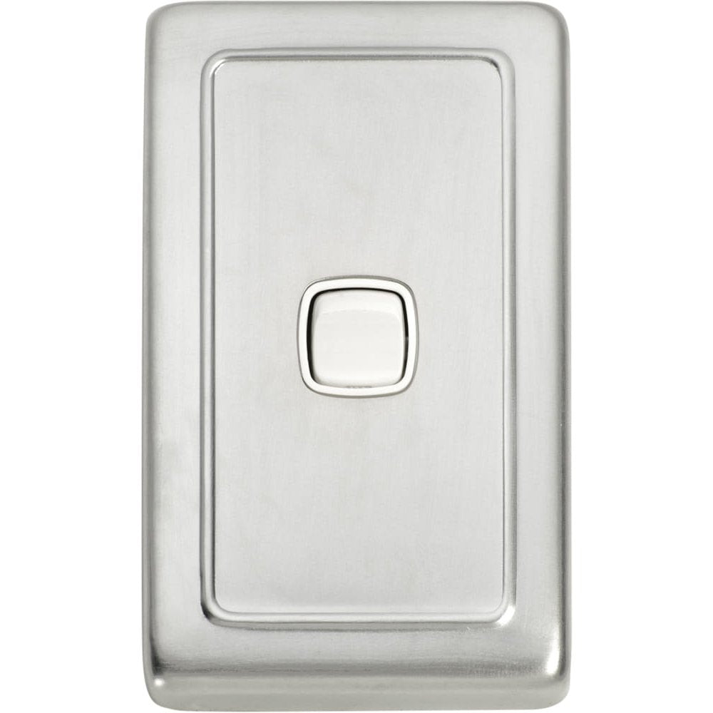 Switch Flat Plate Rocker 1 Gang White Satin Chrome