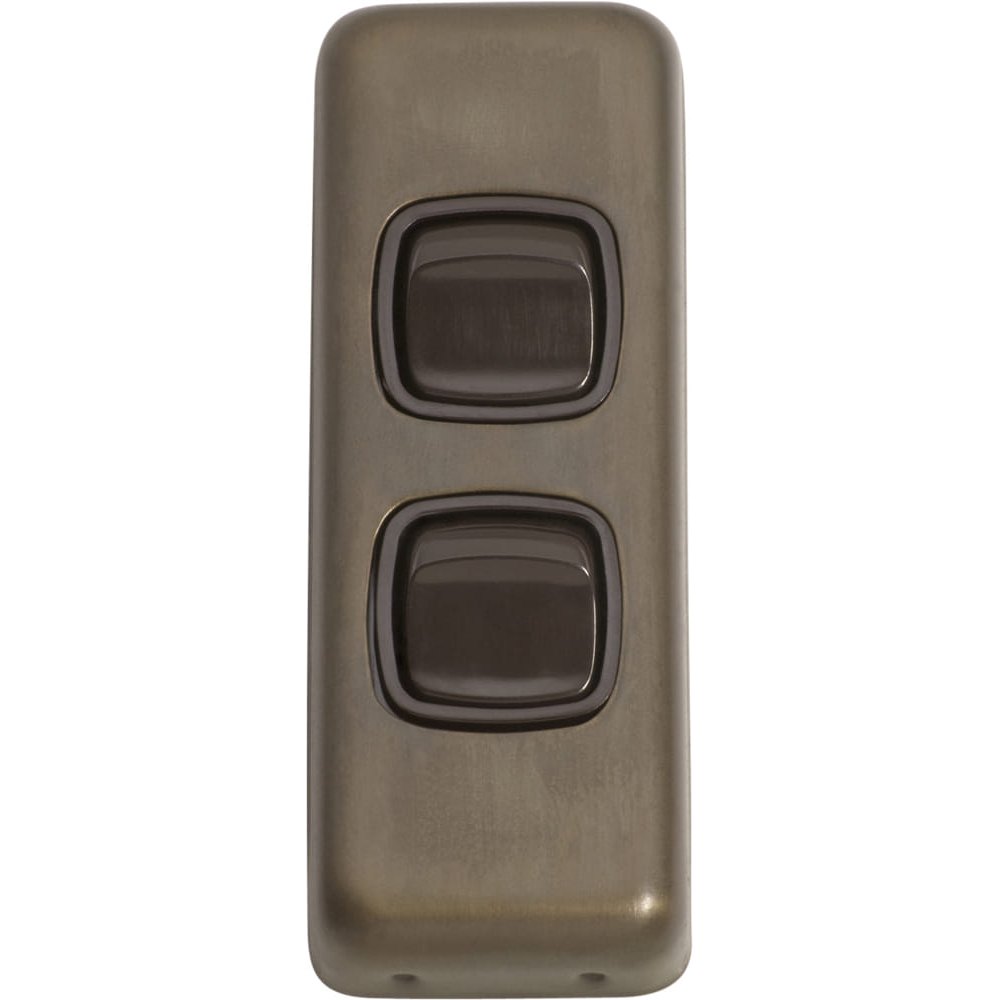 • TradCo Switch Flat Plate Rocker 2 Gang Brown Antique Brass