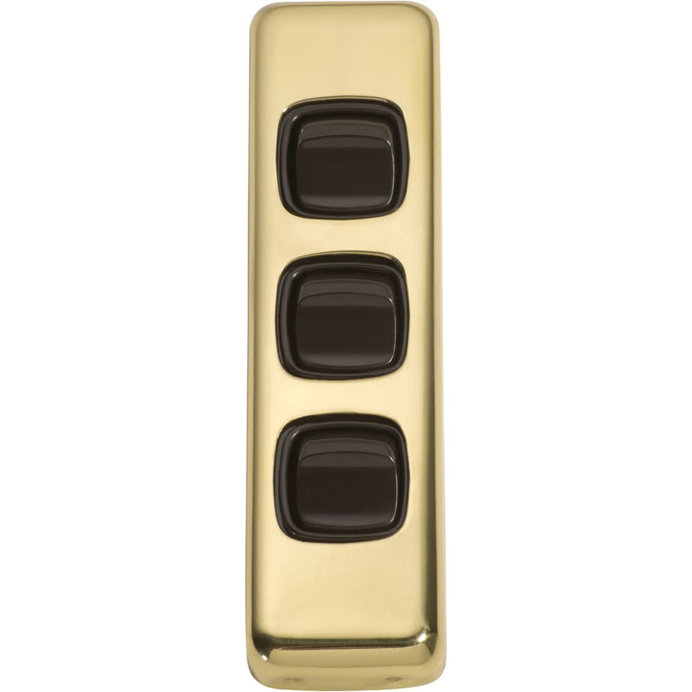 Switch Flat Plate Rocker 3 Gang Brown Polished Brass