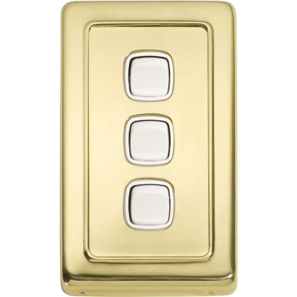 Switch Flat Plate Rocker 3 Gang White Polished Brass