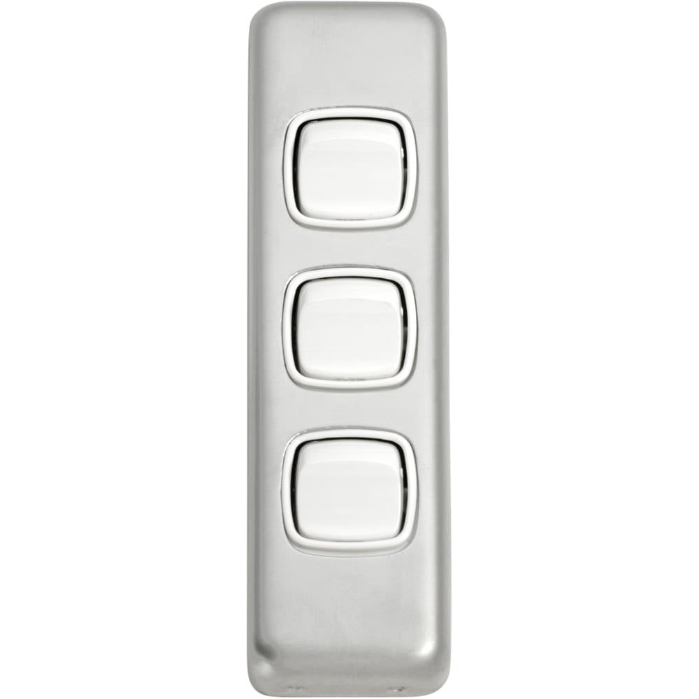 Switch Flat Plate Rocker 3 Gang White Satin Chrome