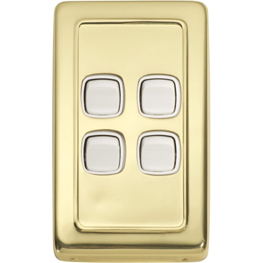 Switch Flat Plate Rocker 4 Gang White Polished Brass