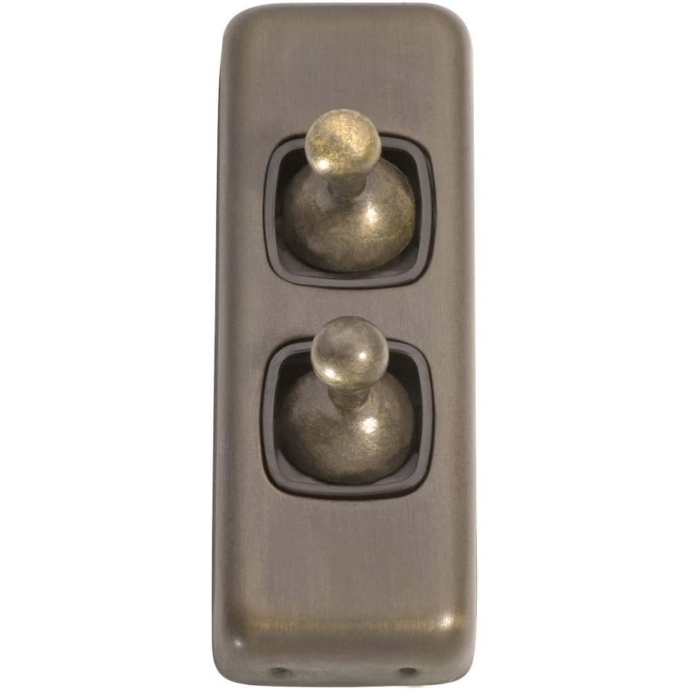 Switch Flat Plate Toggle 2 Gang Brown Antique Brass