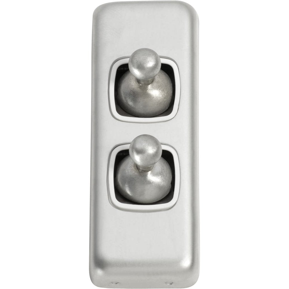 Switch Flat Plate Toggle 2 Gang White Satin Chrome