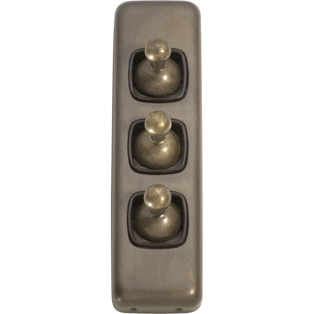 Switch Flat Plate Toggle 3 Gang Brown Antique Brass