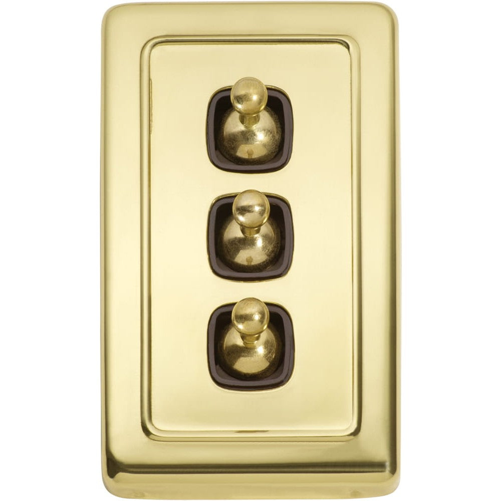 Switch Flat Plate Toggle 3 Gang Brown Polished Brass