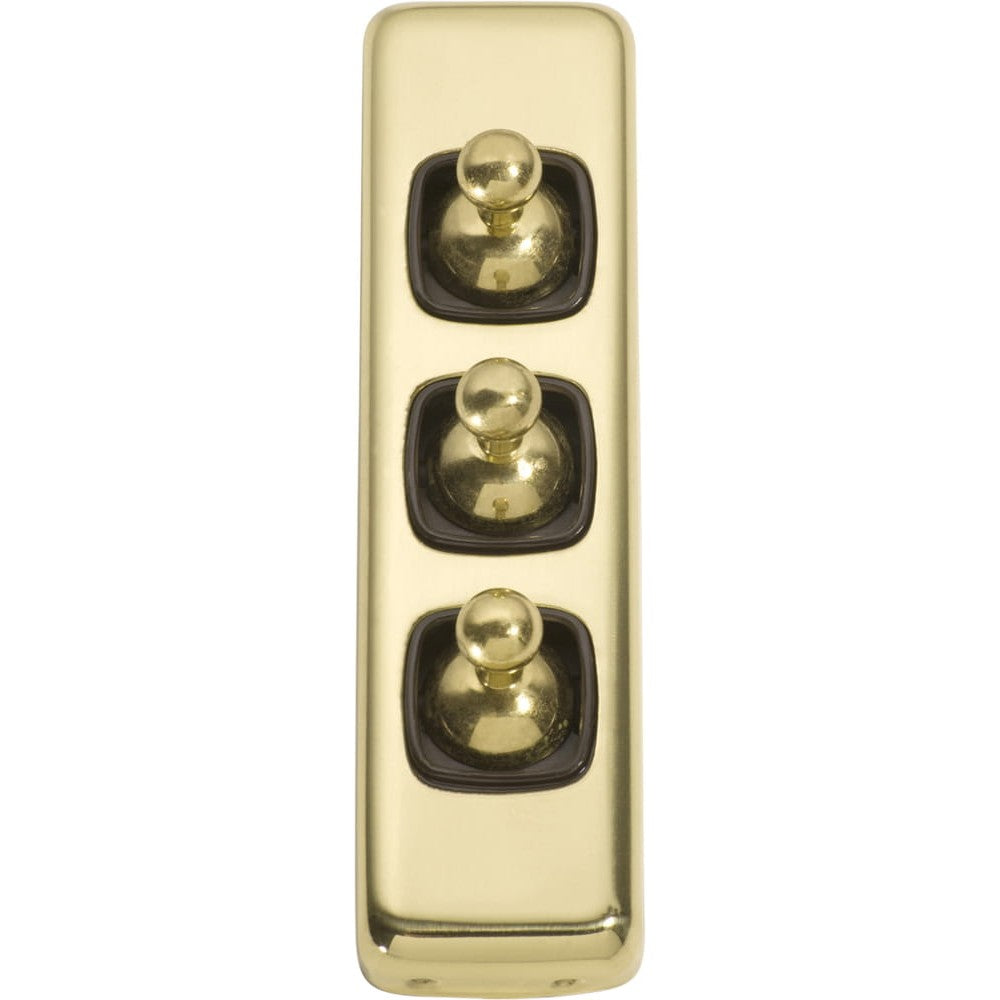 • TradCo Switch Flat Plate Toggle 3 Gang Brown Polished Brass