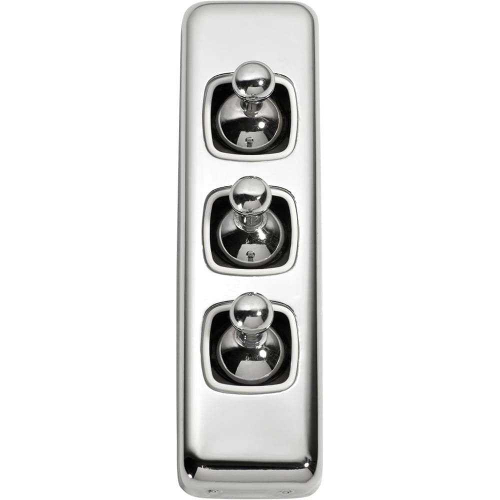 • TradCo Switch Flat Plate Toggle 3 Gang White Chrome Plated