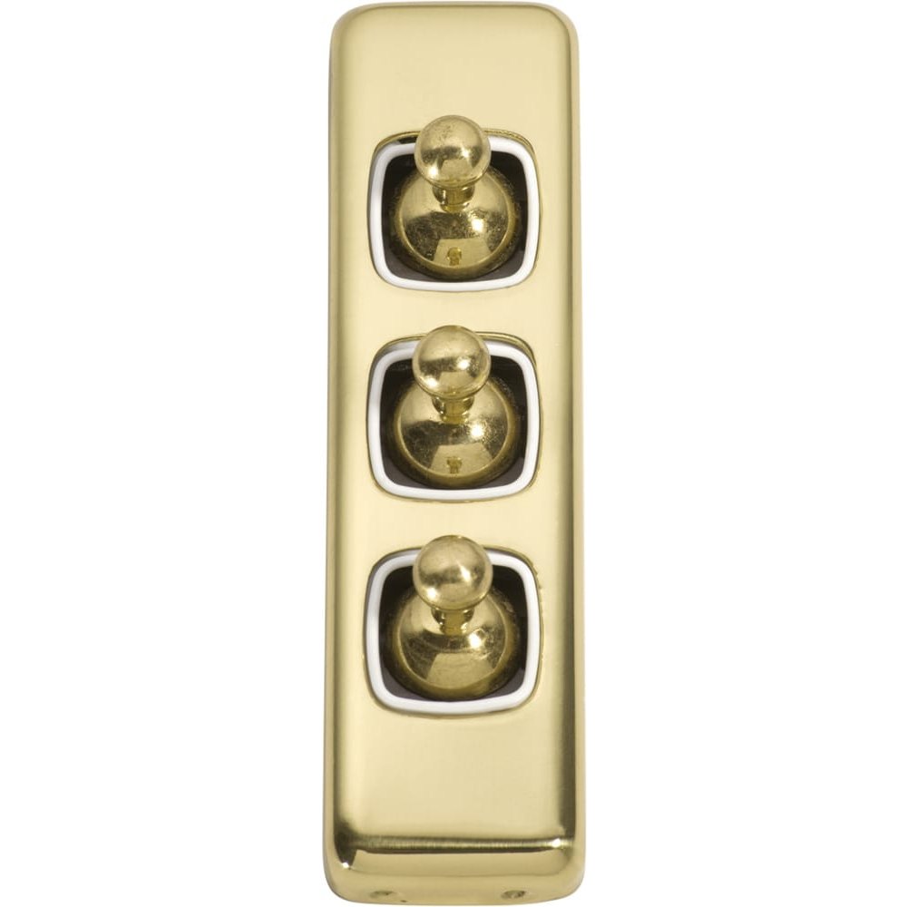 • TradCo Switch Flat Plate Toggle 3 Gang White Polished Brass