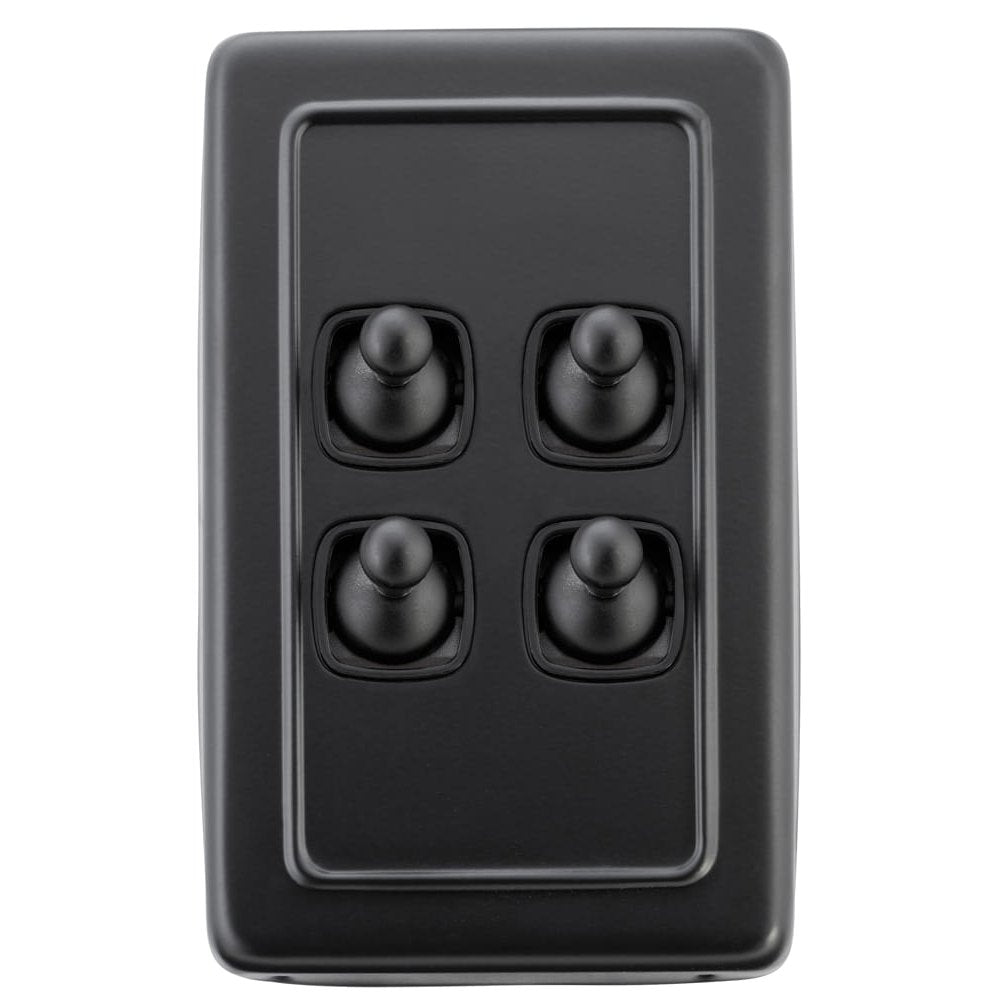 • TradCo Switch Flat Plate Toggle 4 Gang Matt Black