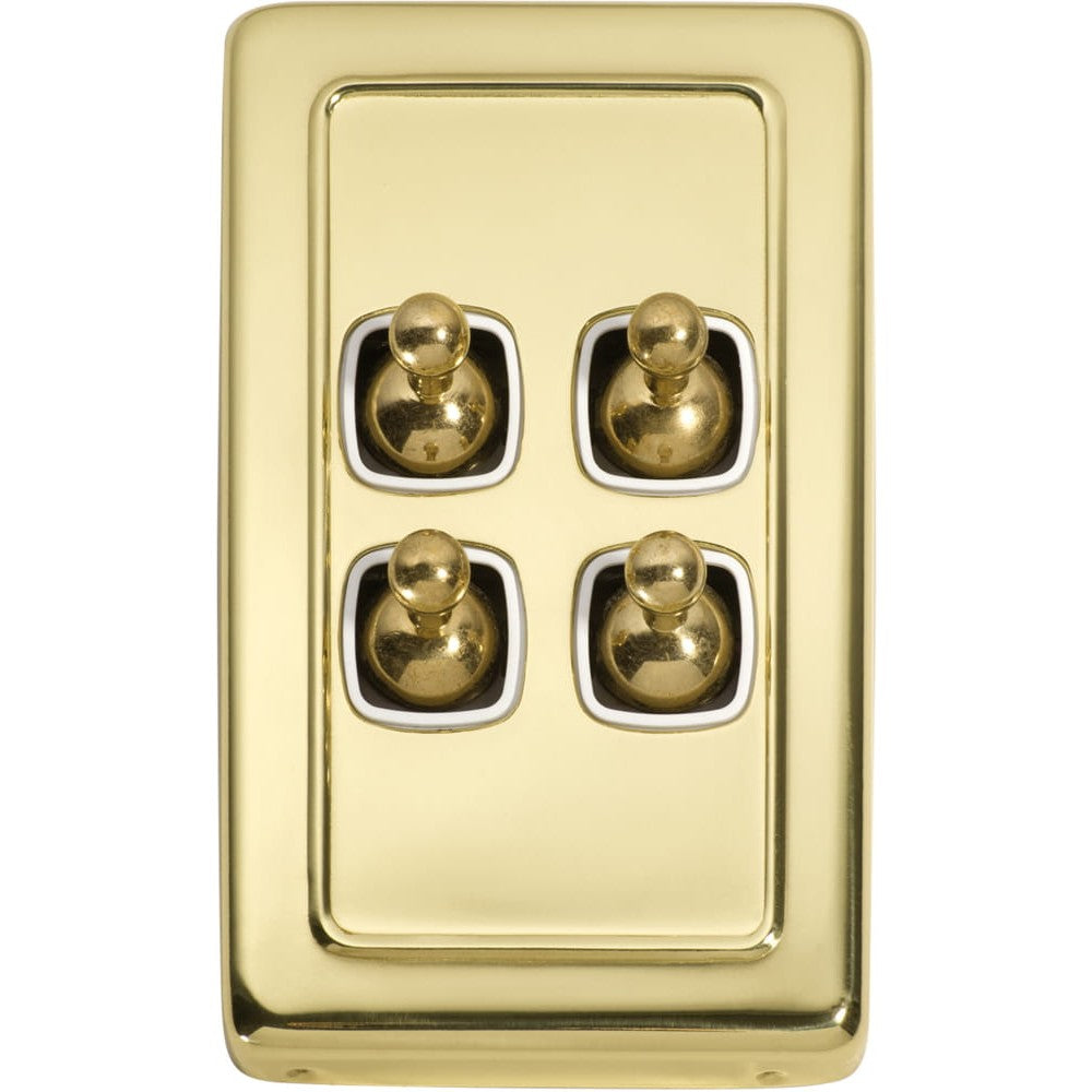 Switch Flat Plate Toggle 4 Gang White Polished Brass