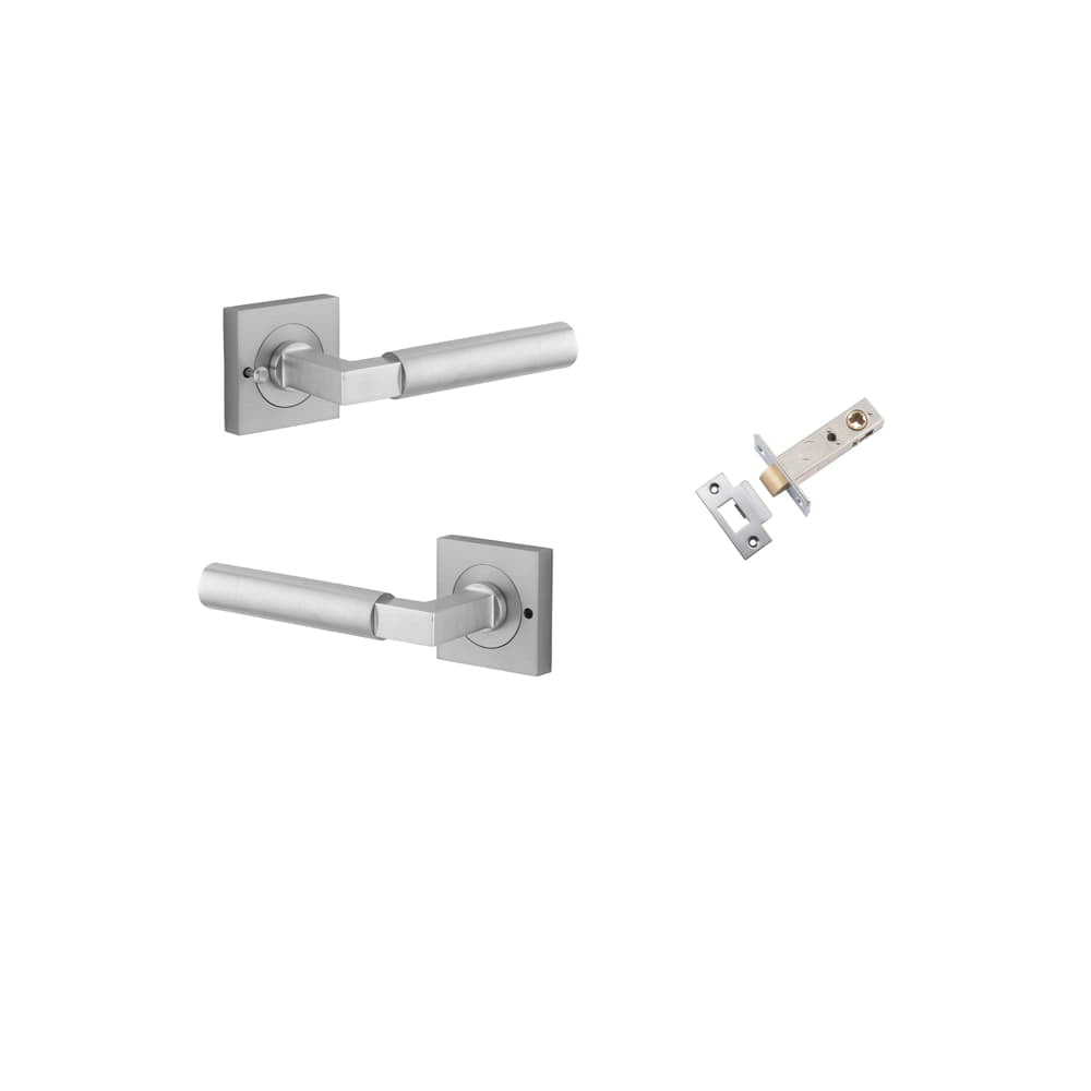 Door Lever Berlin Square Rose Inbuilt Privacy Kit Brushed Chrome