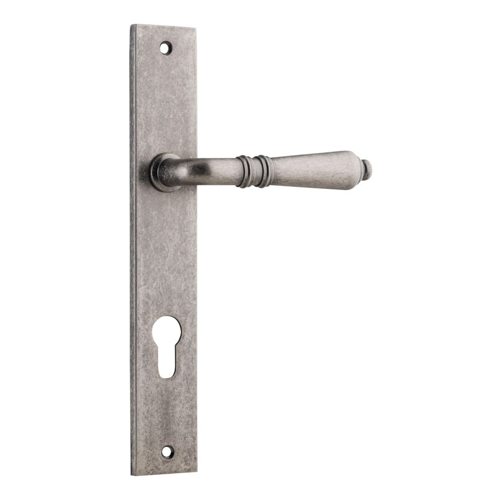 • Iver Door Lever Sarlat Rectangular Euro Distressed Nickel