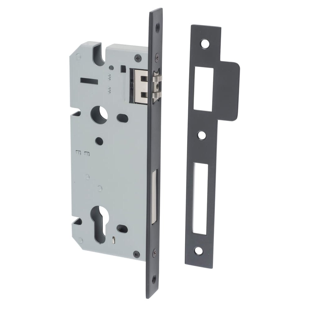 Mortice Lock Roller Euro Matt Black CTC85mm Backset 45mm
