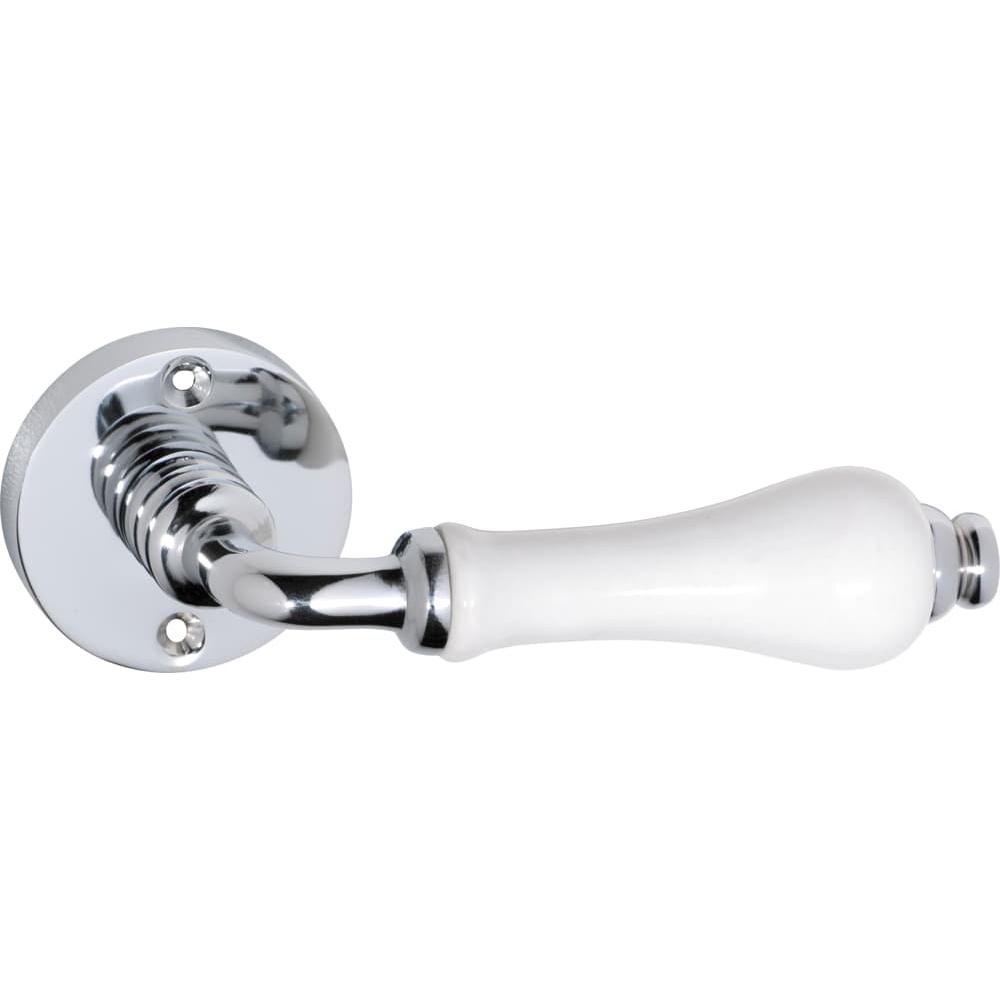 Door Lever Exeter Round Rose Pair Porcelain Chrome Plated D50xP66mm
